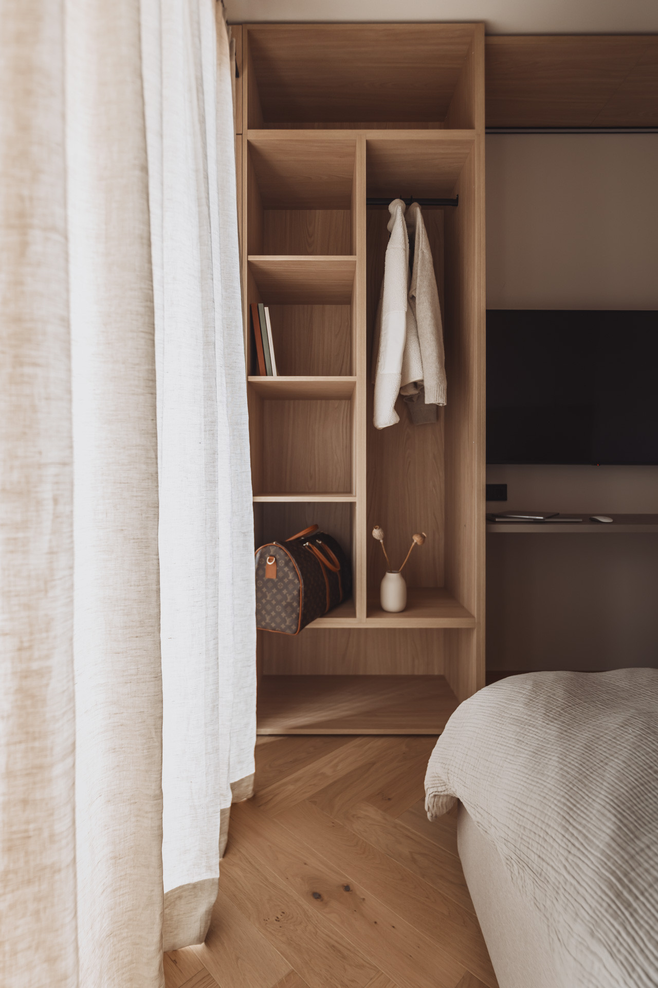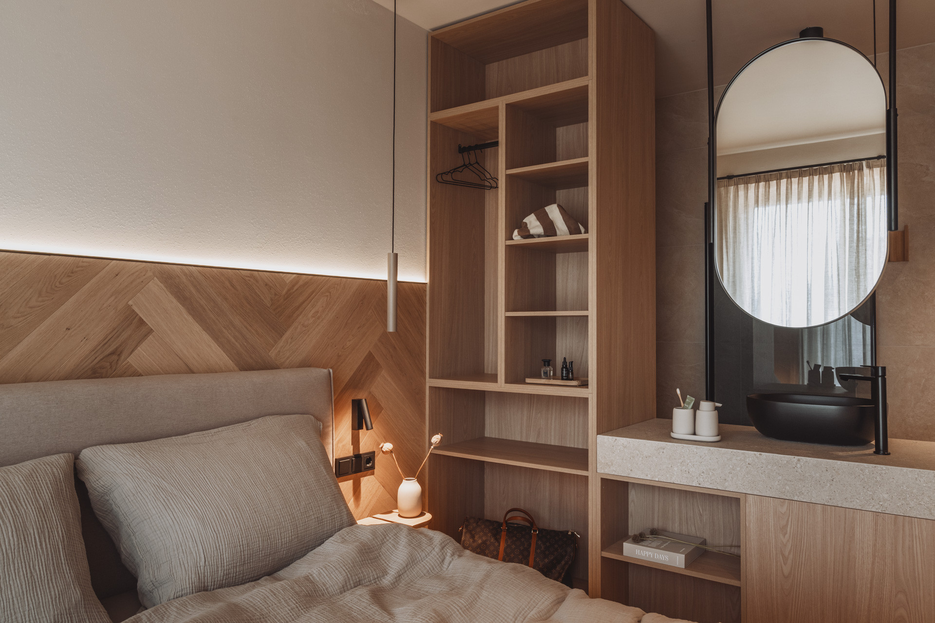 The suite impresses with natural clarity and calm, reduced lines. With two bedrooms and two bathrooms, a place is created to arrive and take a deep breath. The 65 m² suite features a fully equipped kitchen with an induction hob, dishwasher and all necessary kitchen utensils. Generous windows bring the nature inside and thus merge into a harmonious whole.