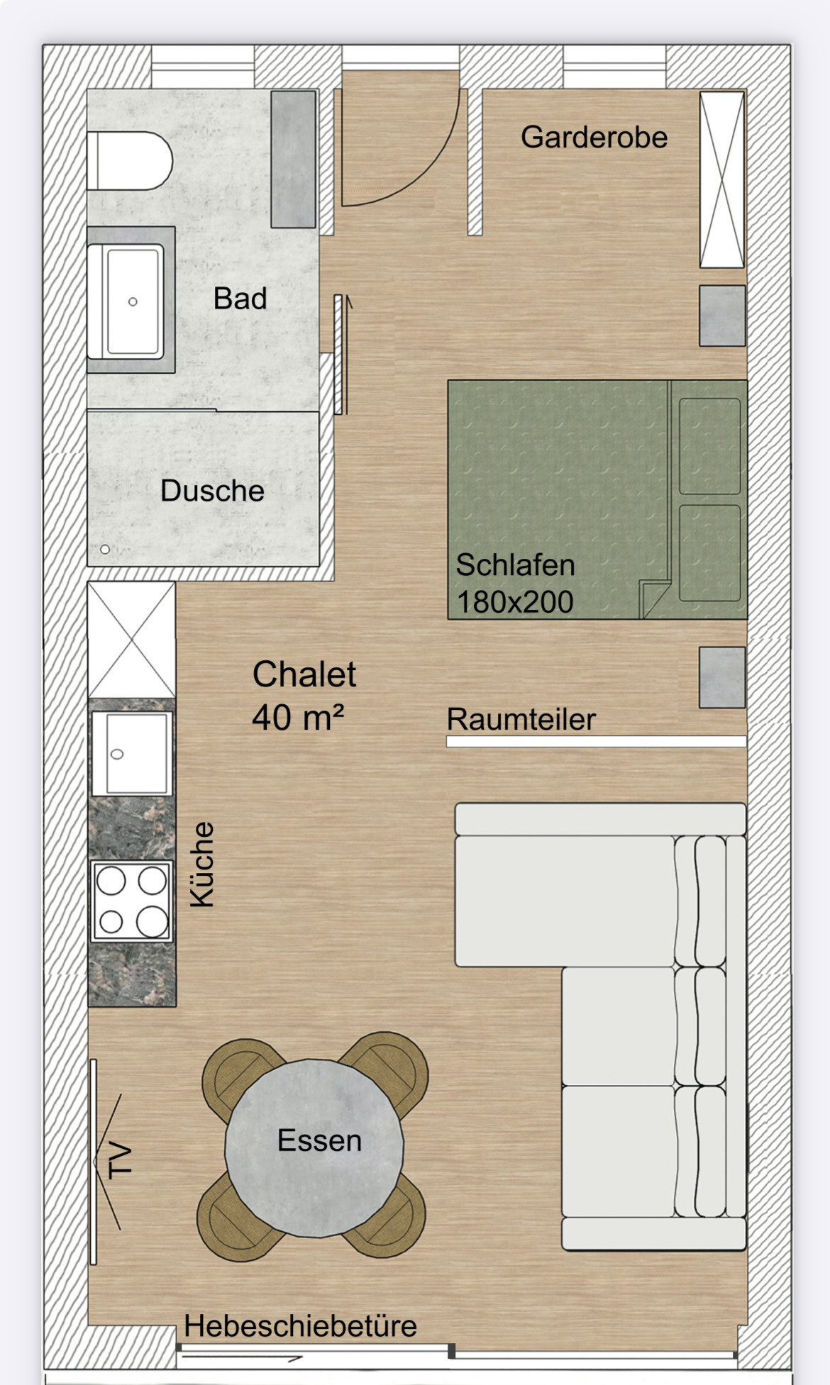 The apartment in Bad Aussee has 1 bedrooms and has capacity for 2 people. The apartment is 40 m². The accommodation is equipped with the following items: internet (Wi-Fi), hair dryer, central heating, open-air parking the same building, TV.In the hotplate of glass ceramics open plan kitchen, refrigerator, microwave, freezer, dishwasher, dishes/cutlery, kitchen utensils, coffee machine, toaster and kettle are provided.