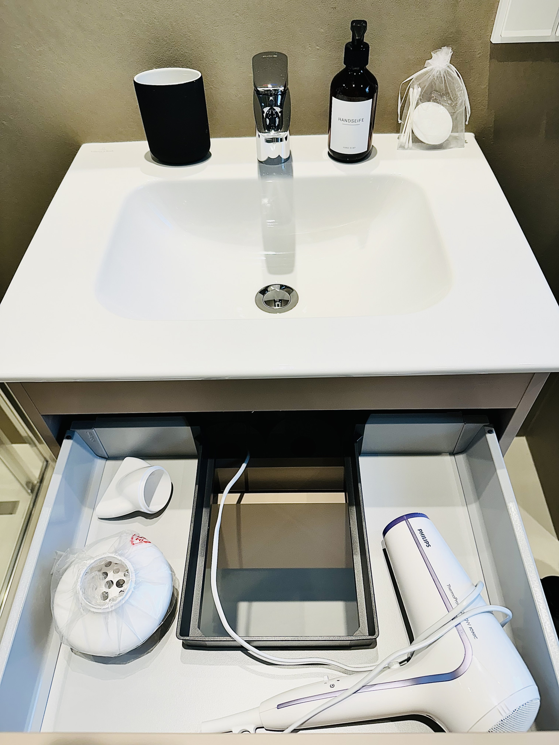In the hotplate of glass ceramics open plan kitchen, refrigerator, microwave, freezer, dishwasher, dishes/cutlery, kitchen utensils, coffee machine, toaster and kettle are provided.
