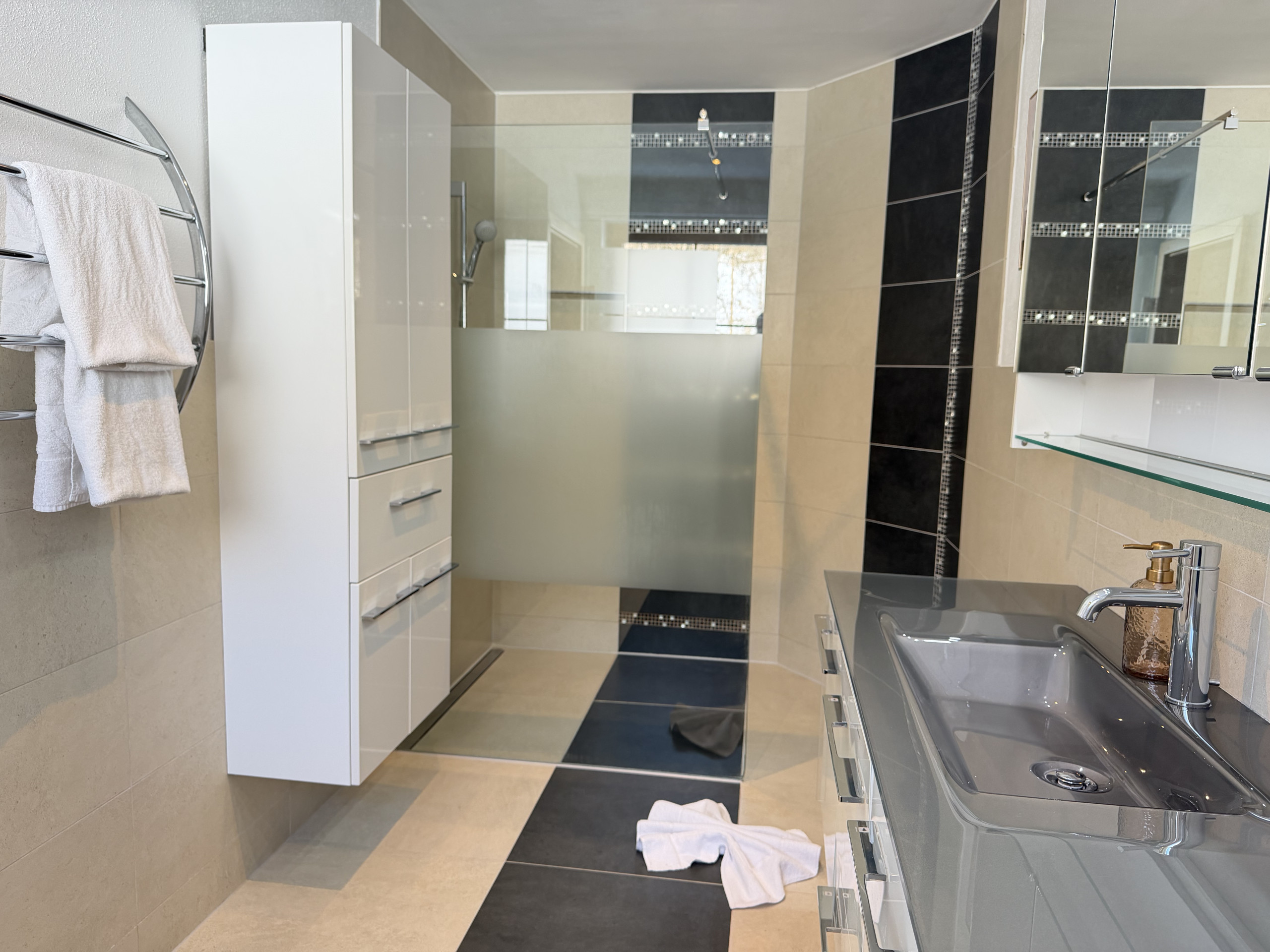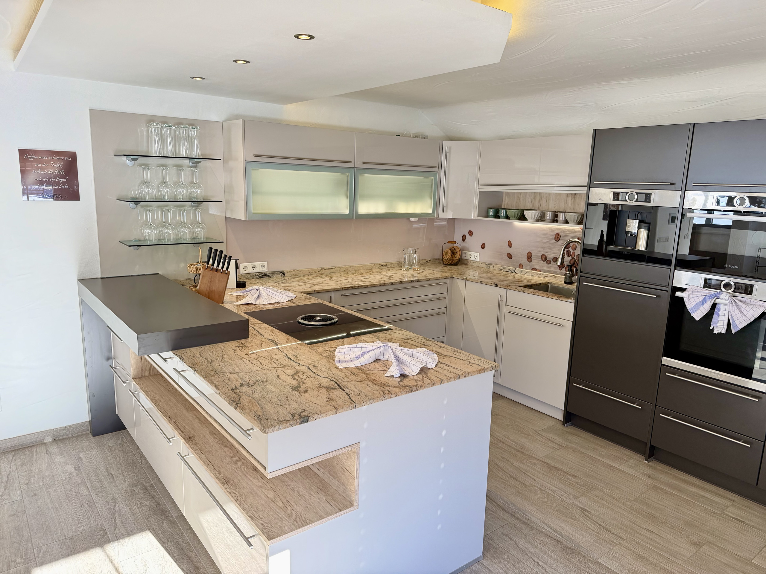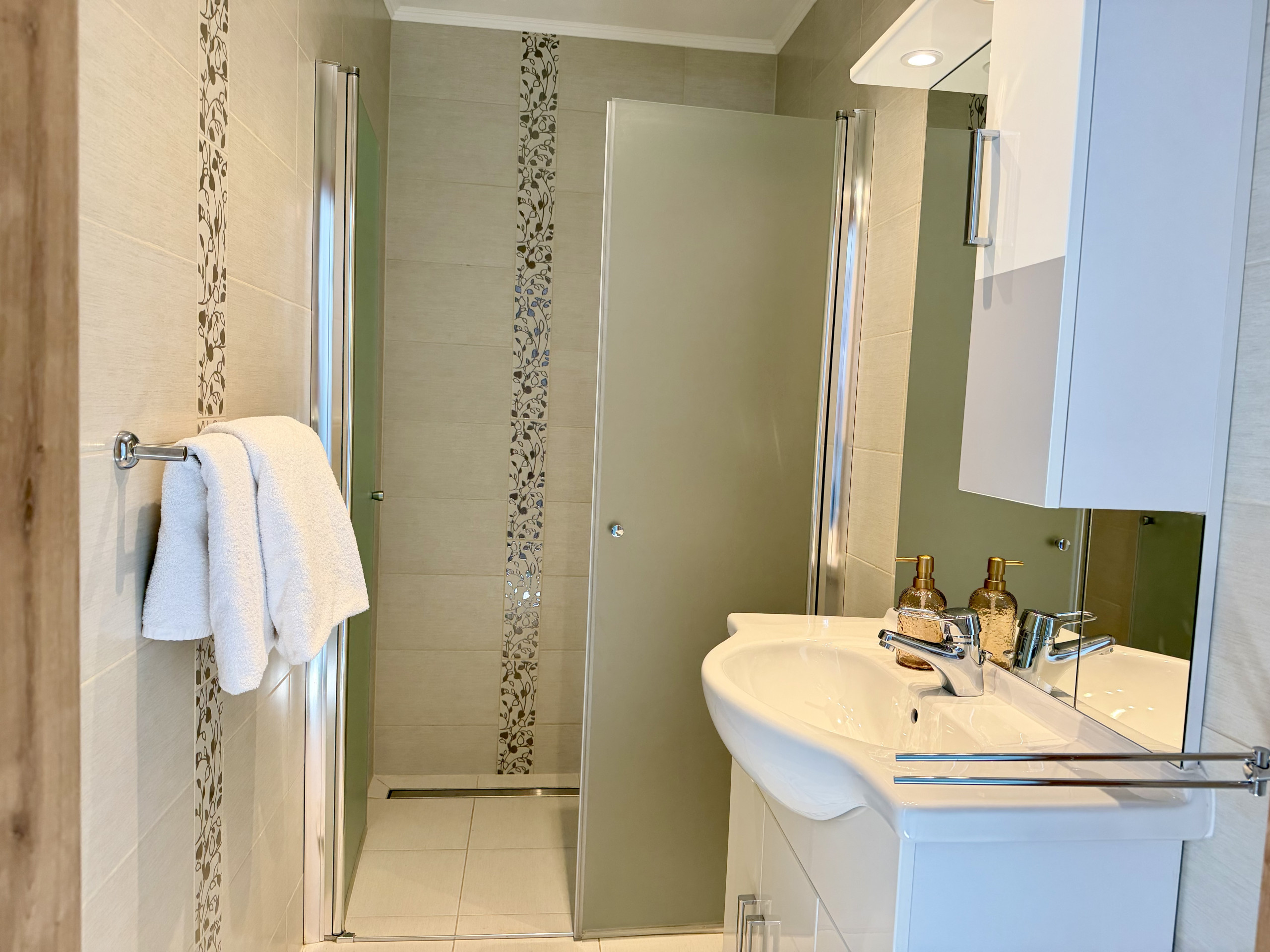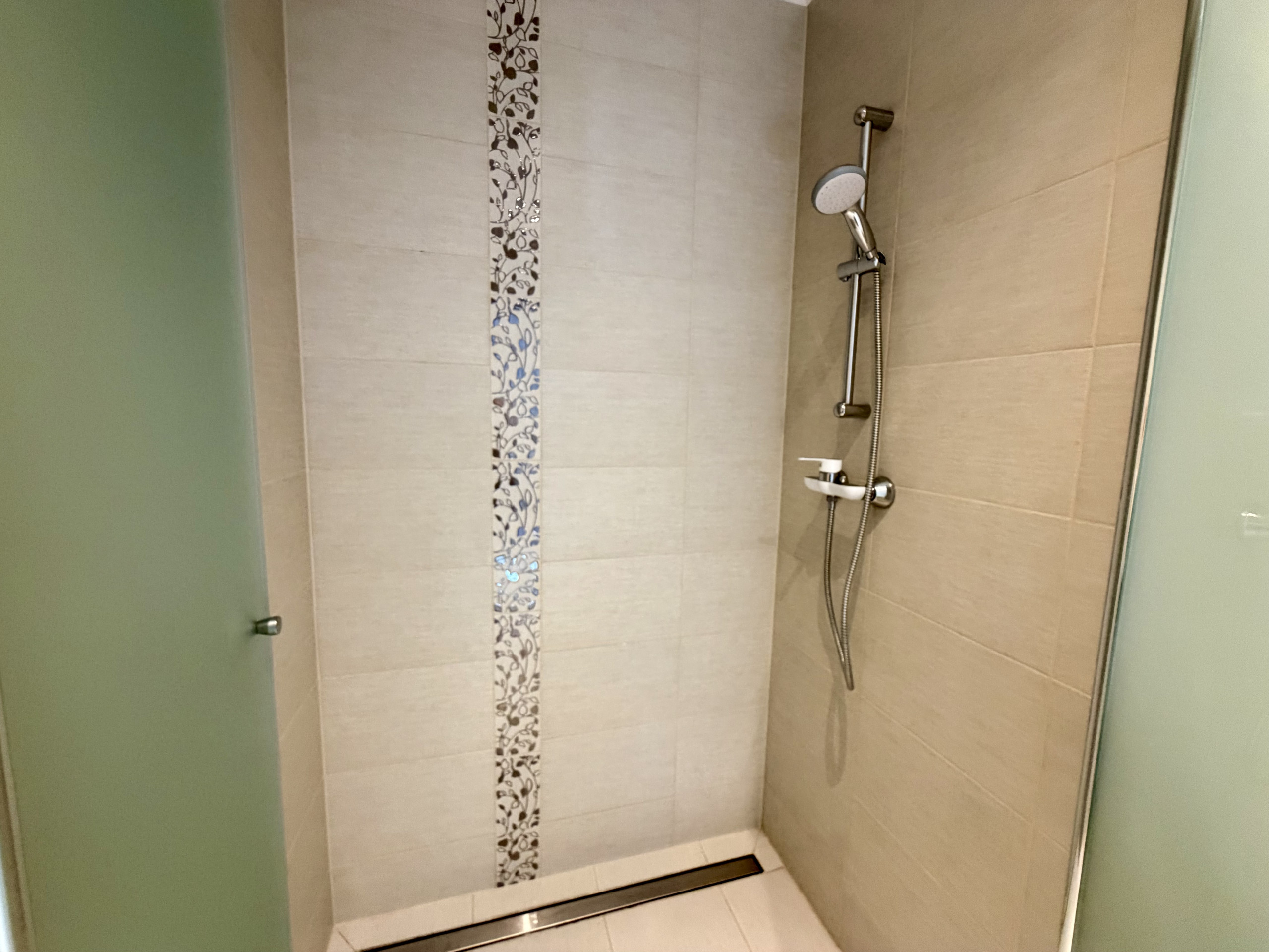 The apartment boasts two bedrooms with a versatile sleeping arrangement, featuring two king-size beds and two double sofa beds. With two bathrooms - two with showers and two seperate toilets - there's plenty of space and privacy for everyone. The modern American-style kitchen is fully equipped with top-notch appliances including an induction cooktop, fridge, freezer, dishwasher, oven, microwave, coffee machine, and all the kitchenware you'll need to prepare delicious family meals.