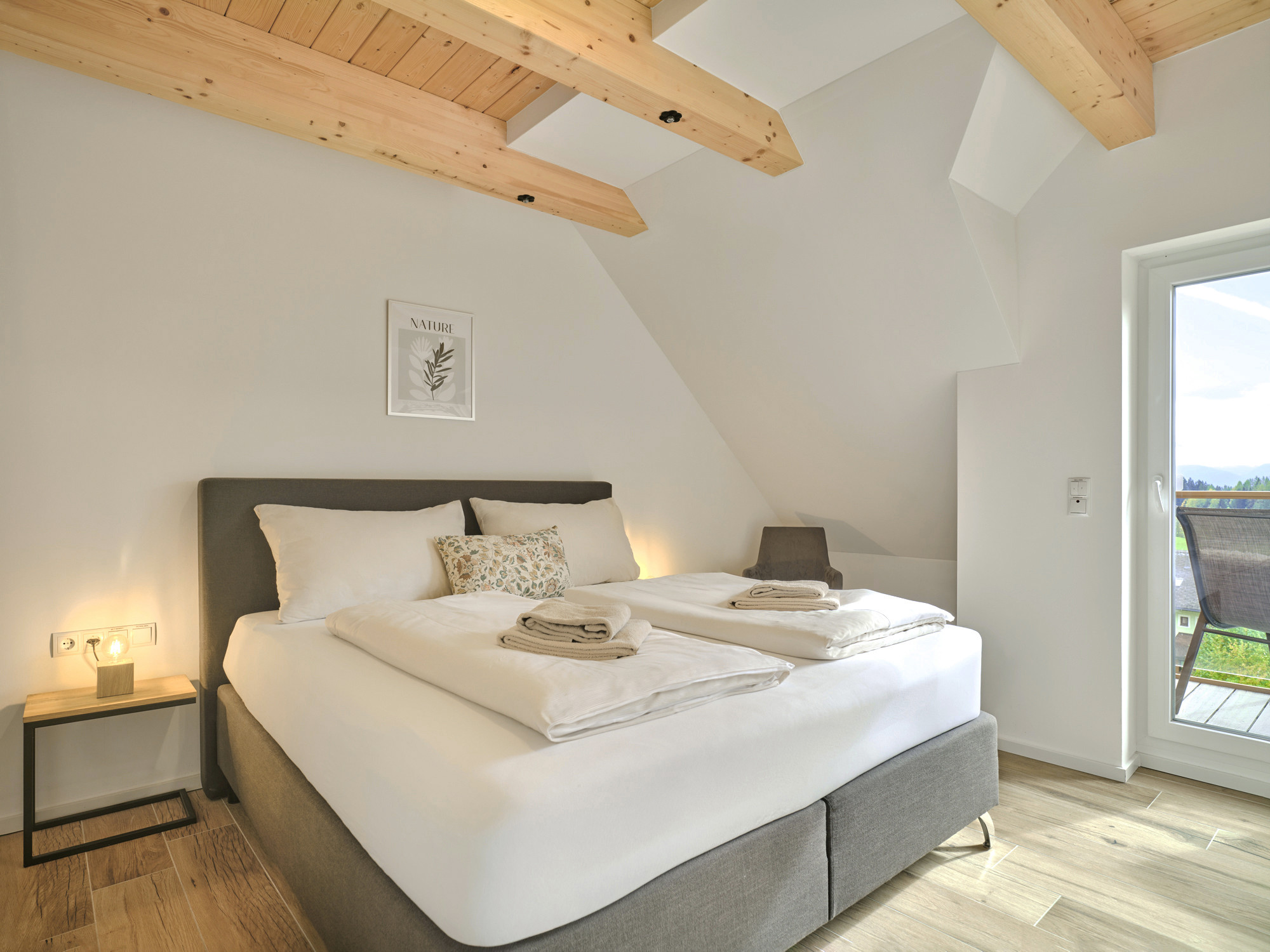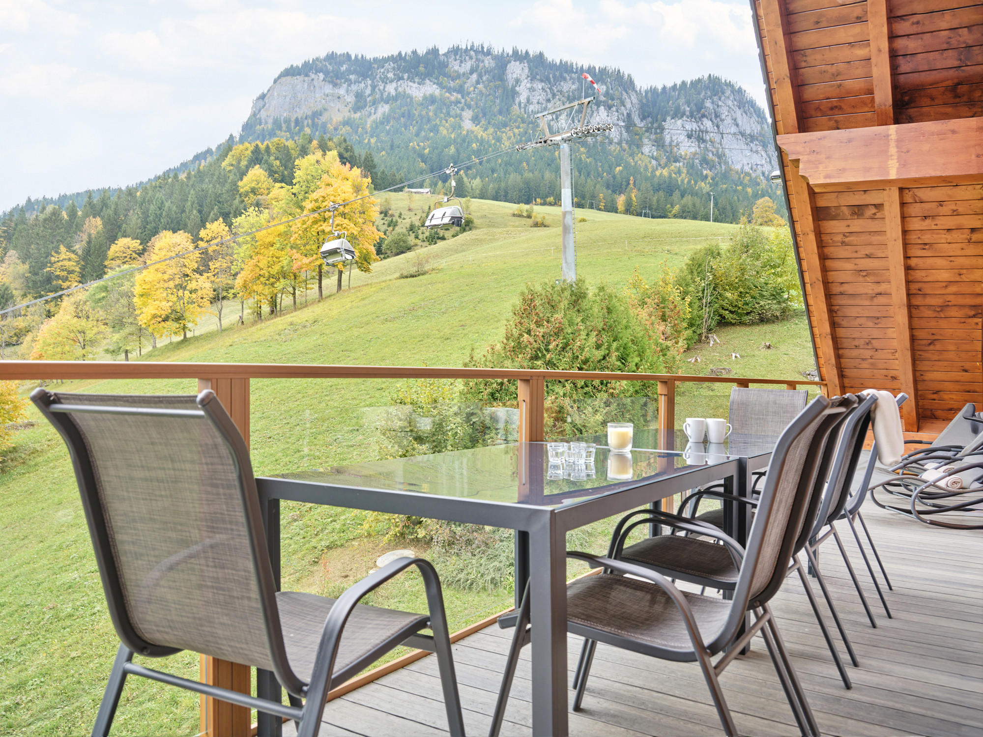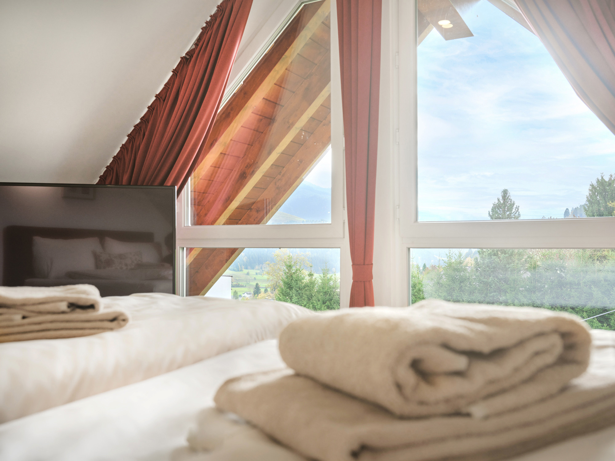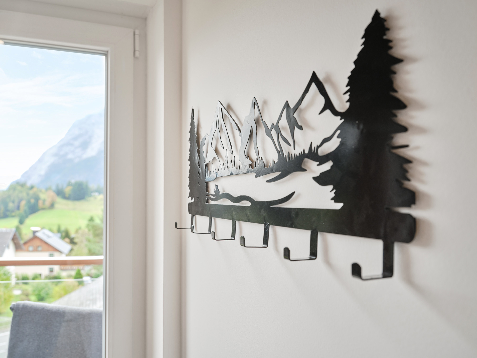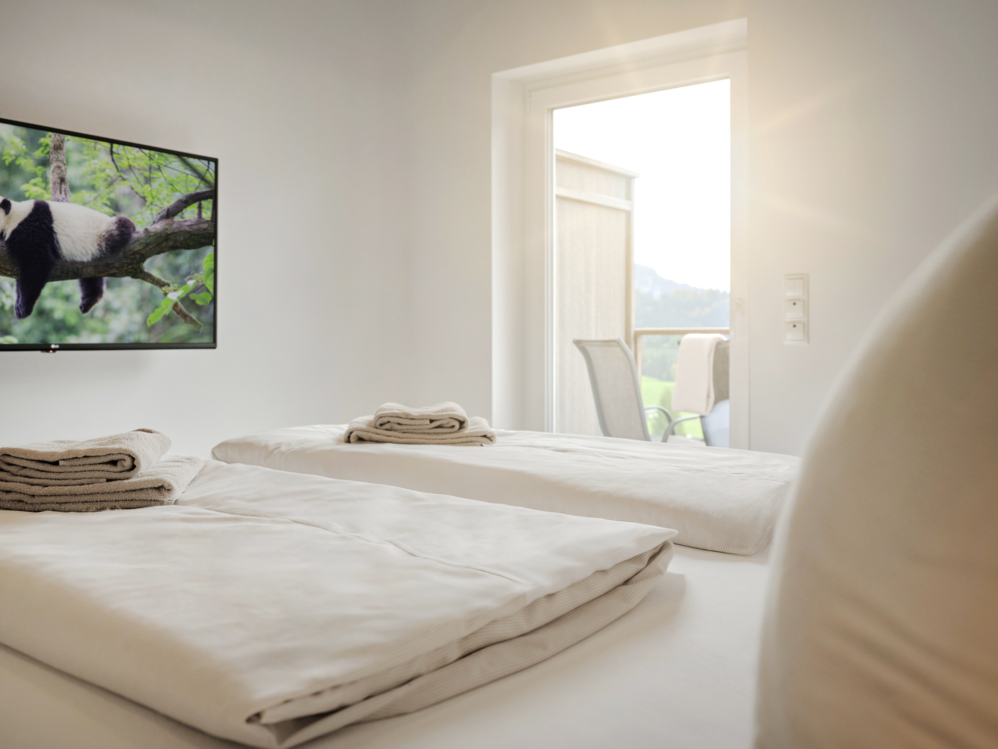 The modern holiday flat „Wasserfall Lodge C2“, Tauplitz, Salzkammergut is tastefully and modernly furnished. On 61 m² it offers space for 6 people. The apartment has 2 bedrooms (1 double bed, 2 single beds) as well as a comfortable sofa bed for 2 people in the living area, 1 bathroom, and 1 guest's toilet. The open kitchen is equipped with the latest appliances. This includes an induction hob, oven, dishwasher, Nespresso coffee machine, and of course, plenty of crockery and cutlery. From the private terrace, you can enjoy the unique view of the surrounding mountains and the ski slopes. The holiday flat has an underground parking space.