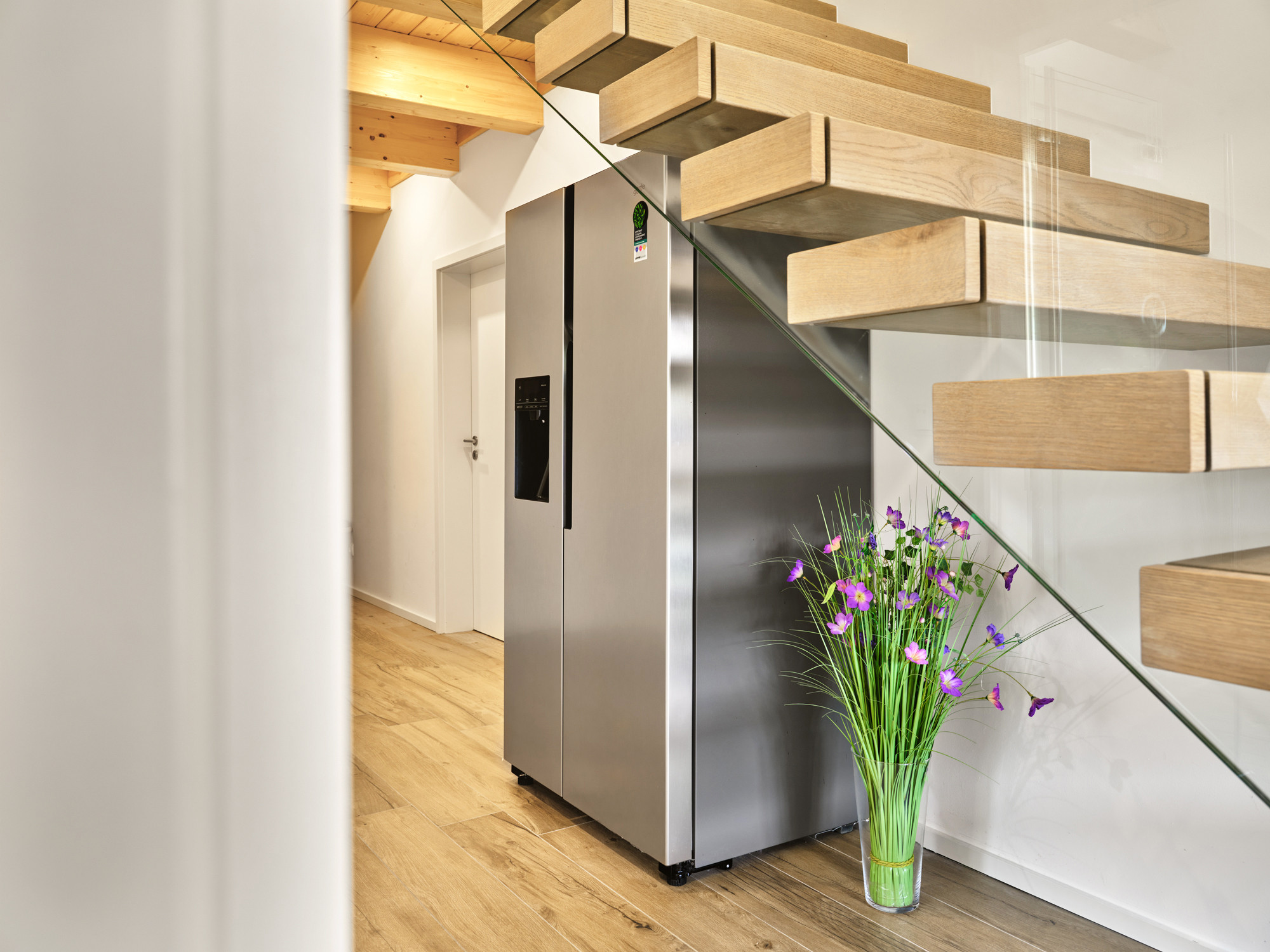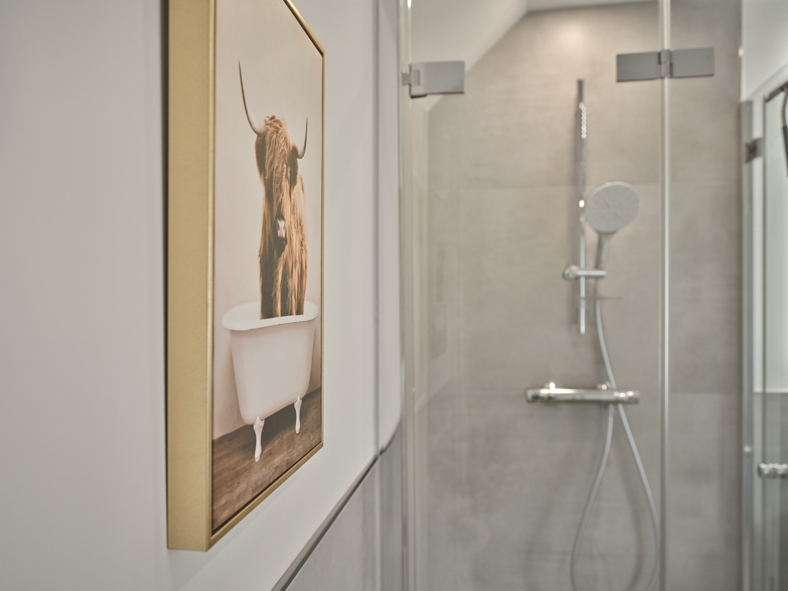 The holiday apartment is decorated in an Alpine style and radiates warmth and coziness thanks to the mix of natural wood and modern elements. You will immediately feel good. In the modern bathroom with shower there is a sauna where you can relax wonderfully after a day on the slopes or cross-country ski trails.