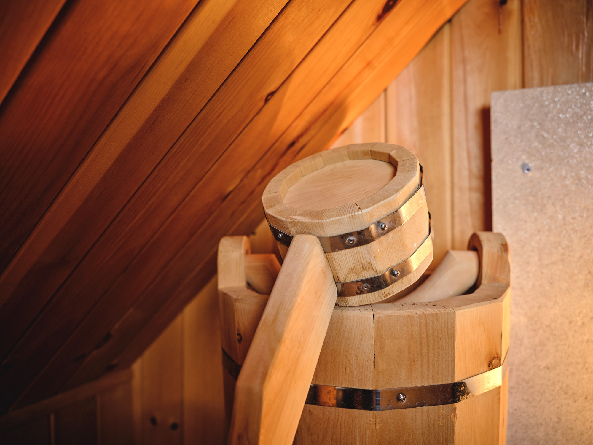 The double bunk bed made of natural wood, in which 4 people can sleep, is particularly cozy and exceptional.