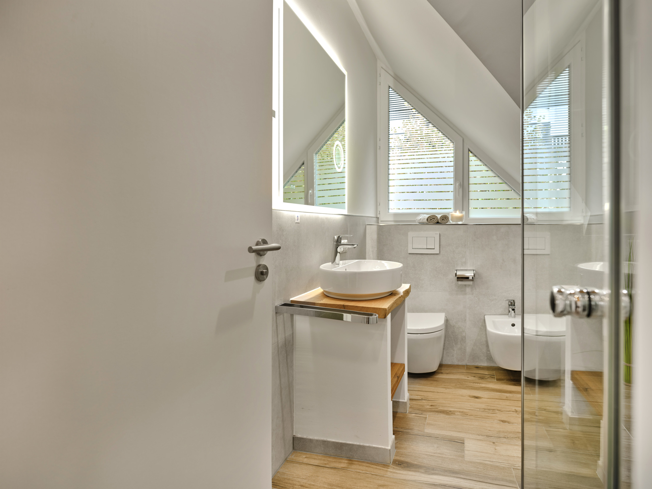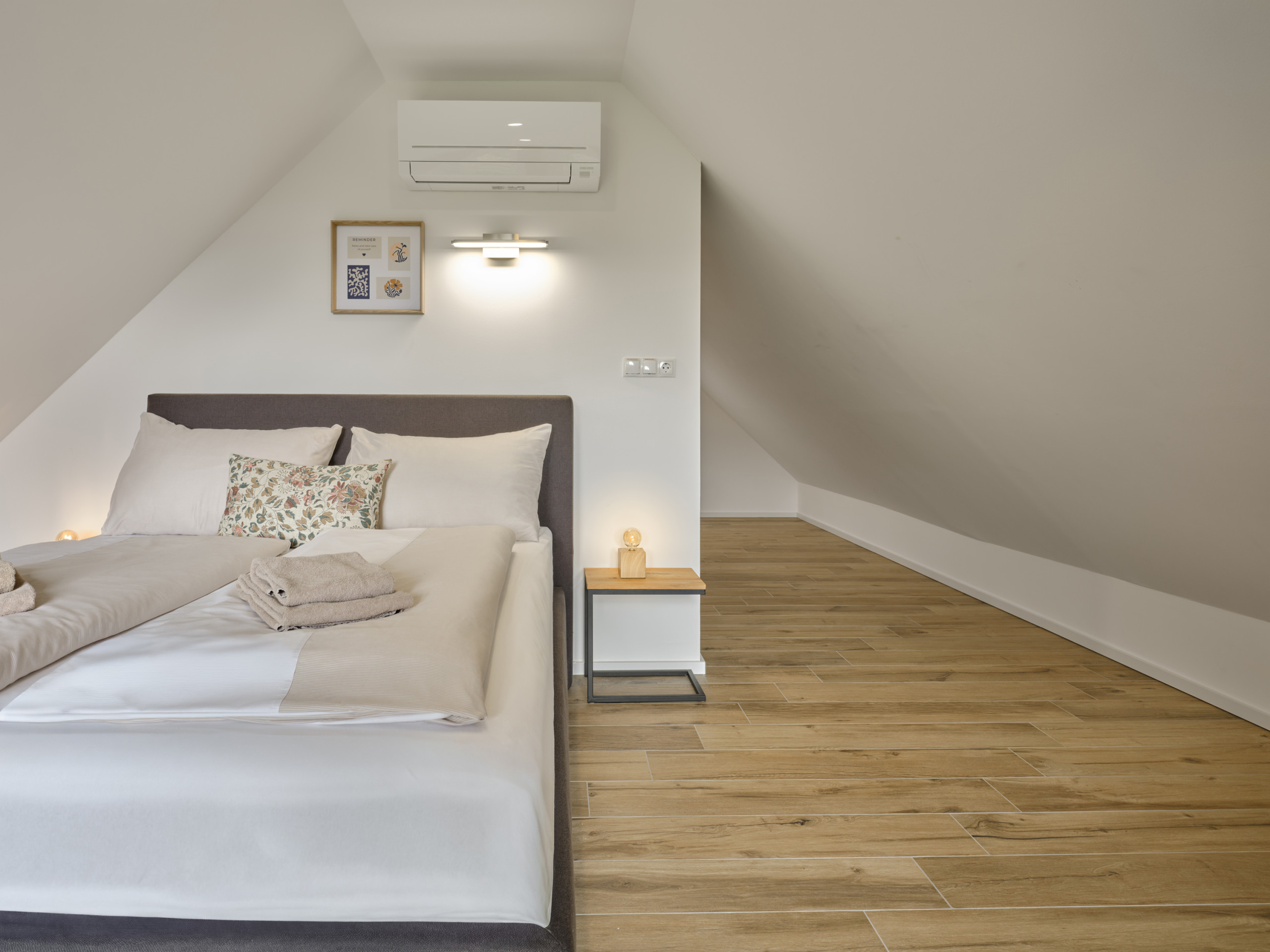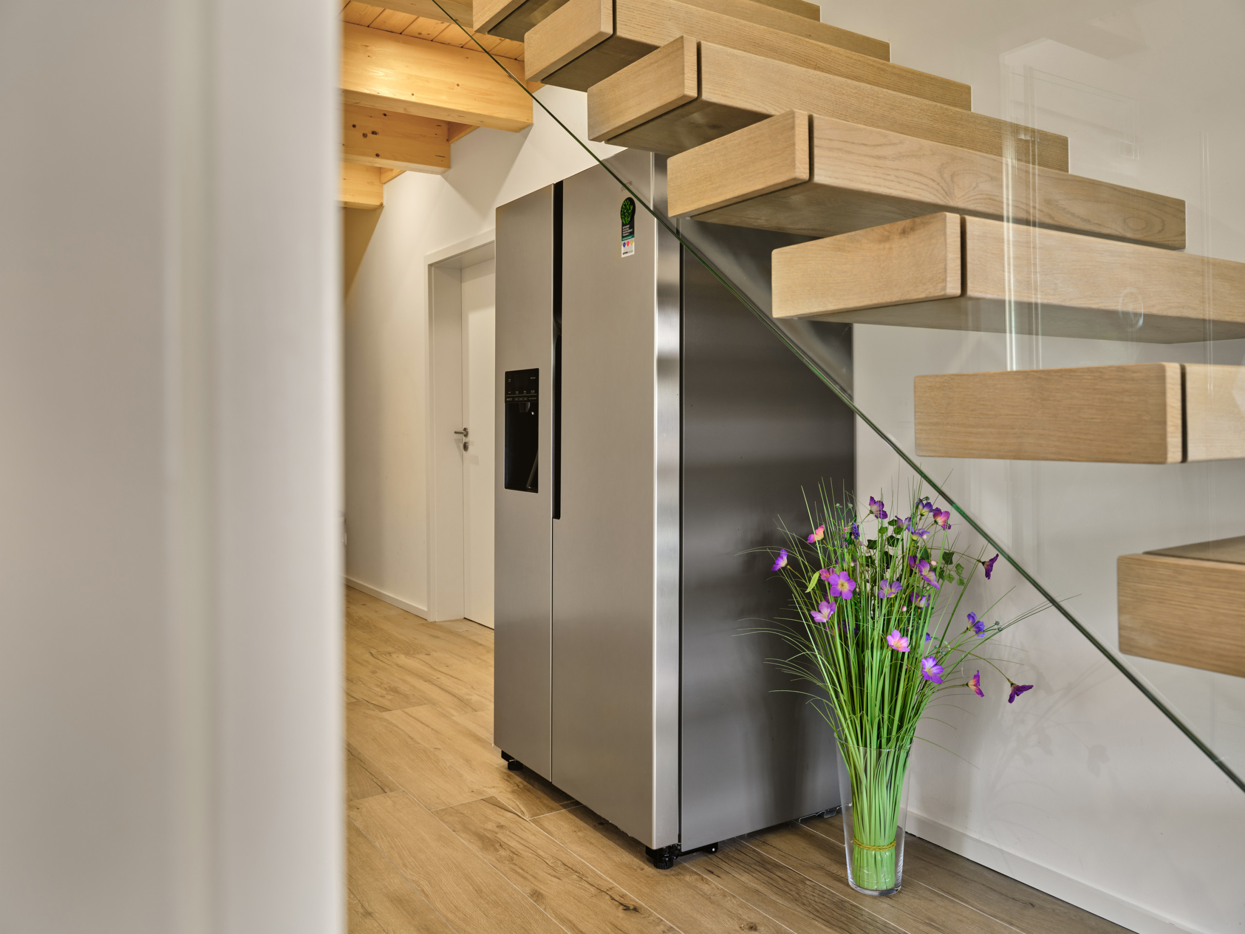The modern equipped kitchen makes cooking enthusiasts cheer - completely equipped with an induction hob, dishwasher, coffee machine and all necessary kitchen utensils. A cosy fireplace provides cosy warmth and romantic atmosphere on cool evenings.