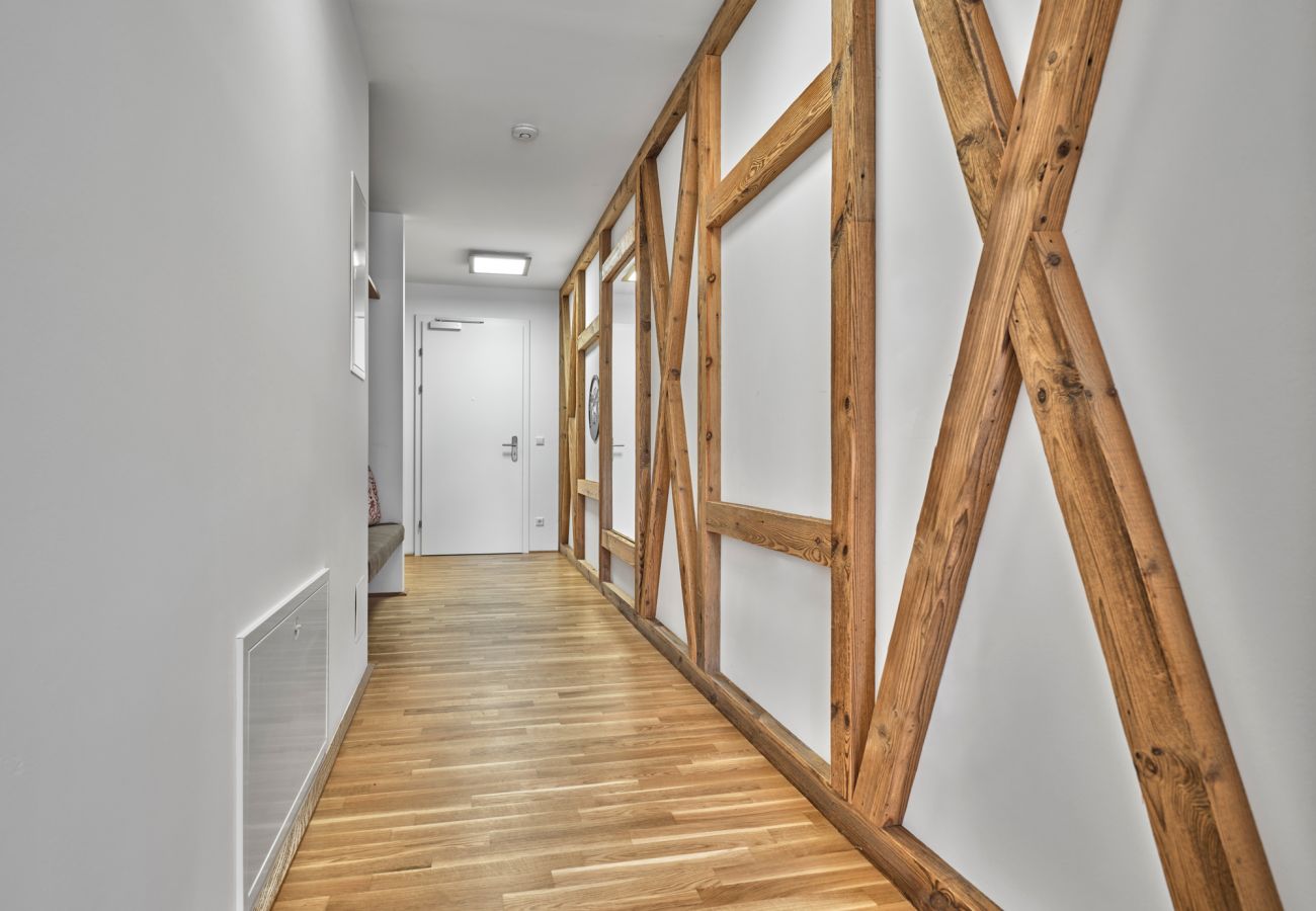 High-quality natural materials such as solid wood and loden were used in the furnishings, making the apartment incredibly comfortable and inviting. You will definitely feel comfortable and cosy immediately.