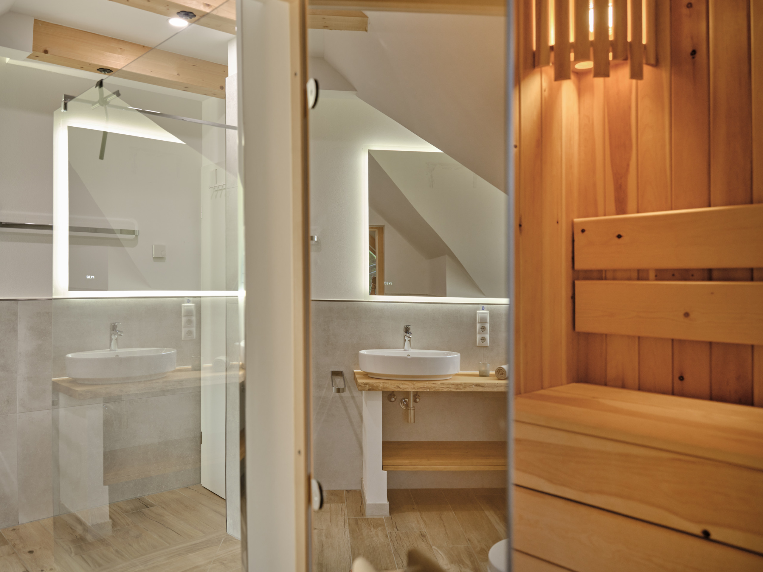 Das Ferienapartment ist im alpinen Stil gehalten und strahlt durch das verbaute Naturholz und die modernen Elemente Wärme und Geborgenheit aus. Sie werden sich gleich wohl fühlen. Im modernen Bad mit Dusche befindet sich eine Sauna in der Sie nach einem Tag auf der Piste oder Loipe herrlich entspannen können.